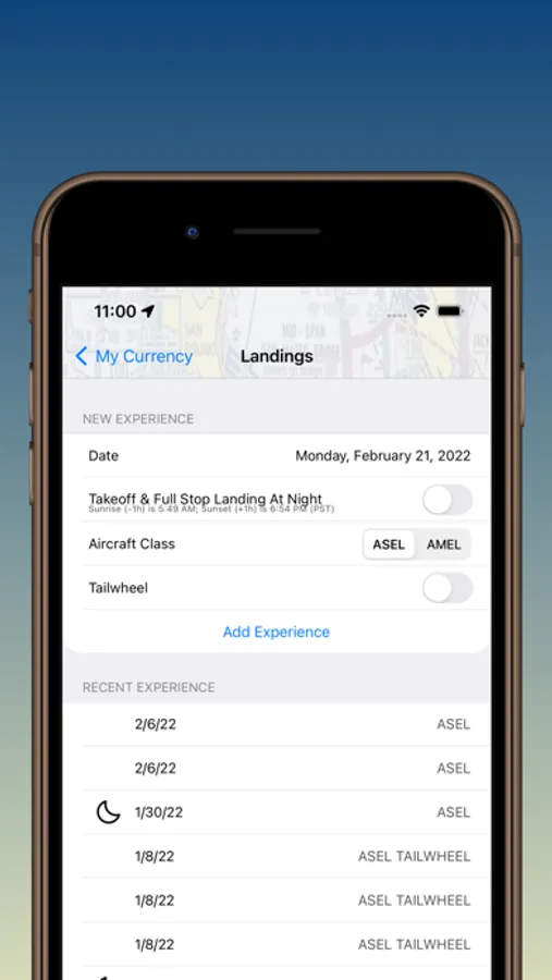 Do you fly conventional gear aircraft? No problem! Tailwheel landings can be marked separately. Unsure if that last landing counts for night currency? One hour before sunrise and one hour after sunset calculated based on your current location. Gliders? Balloons? Helicopters? Welcome aboard!