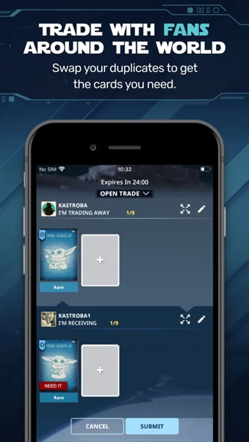 Collect & trade your favorite Star Wars™ characters, weapons, spacecraft, moments, and more with fans across the galaxy in the Star Wars™: Card Trader by Topps digital collectibles app! Collectible content spanning the original Star Wars™ Saga movies to new Star Wars releases on Disney+! Star Wars™: Card Trader by Topps brings to life the entertaining and delightful collector experience to rip digital collectible packs every day, trade with Star Wars fans around the world, complete sets to earn rewards and much more. Explore a new world of collecting with Star Wars™: Card Trader by Topps.