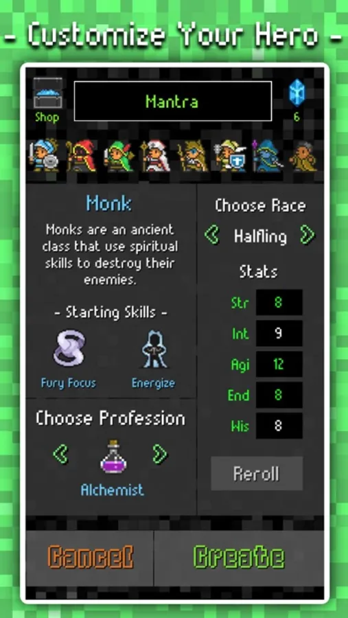 7 Classes - Knight, Rogue, Cleric, Wizard, Druid, Paladin, Illusionist, Monk