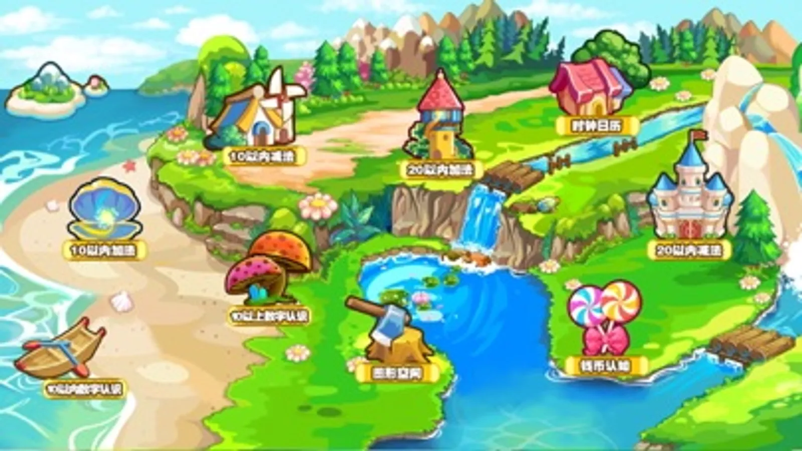 包含2到10岁数学学习的大部分内容,数字,分类,颜色,时钟,形状,加法,减法,乘法,除法,匹配,找规律等各种教学内容。
