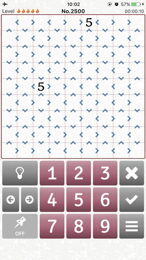 There are five categories to choose from—Normal, Cross, Jigsaw, Cross Jigsaw and Inequality—each with 500 puzzles each, for a total of 2500 puzzles!