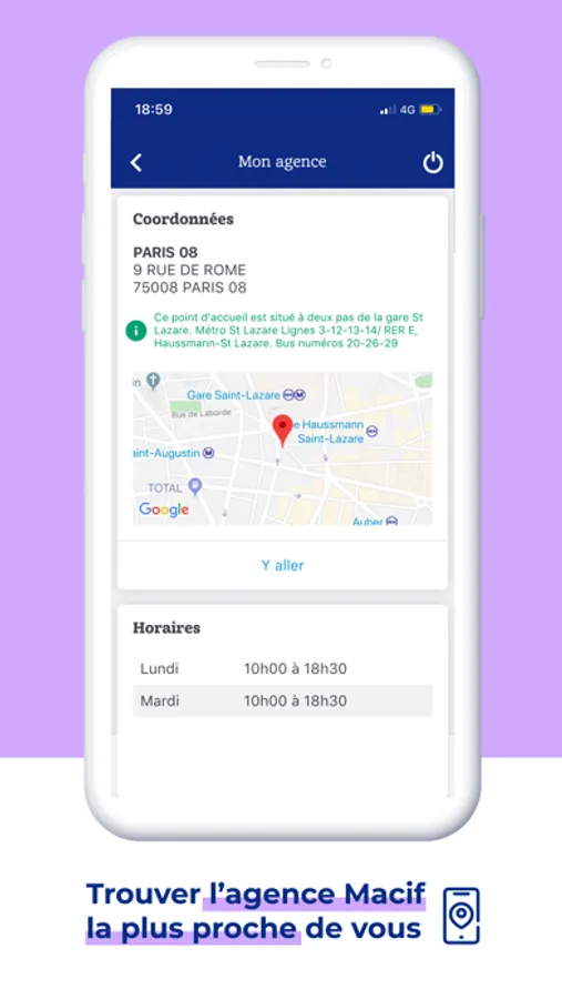 - Consulter les informations de votre agence MACIF (horaires, adresse, etc.)