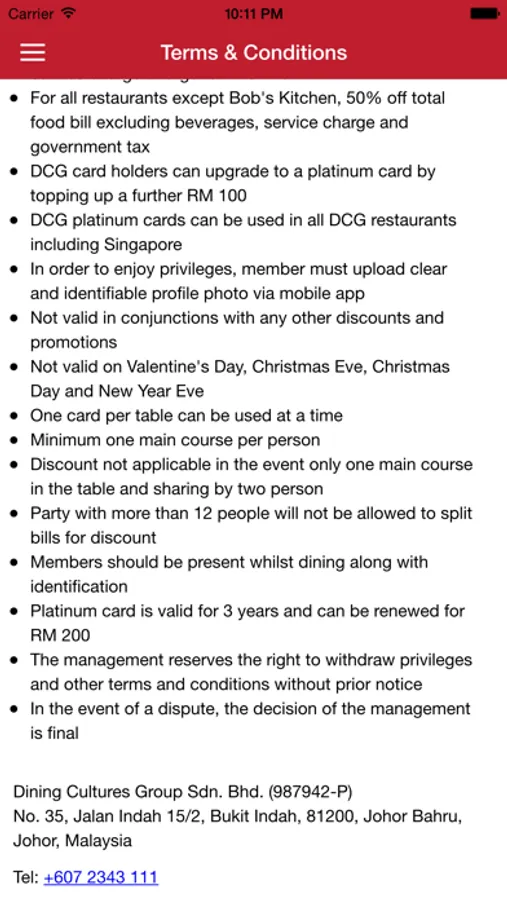 This is an e-membership card for members who sign up for DCG Platinum. Members get to enjoy discounts and other privileges in all DCG restaurants across Malaysia and Singapore.