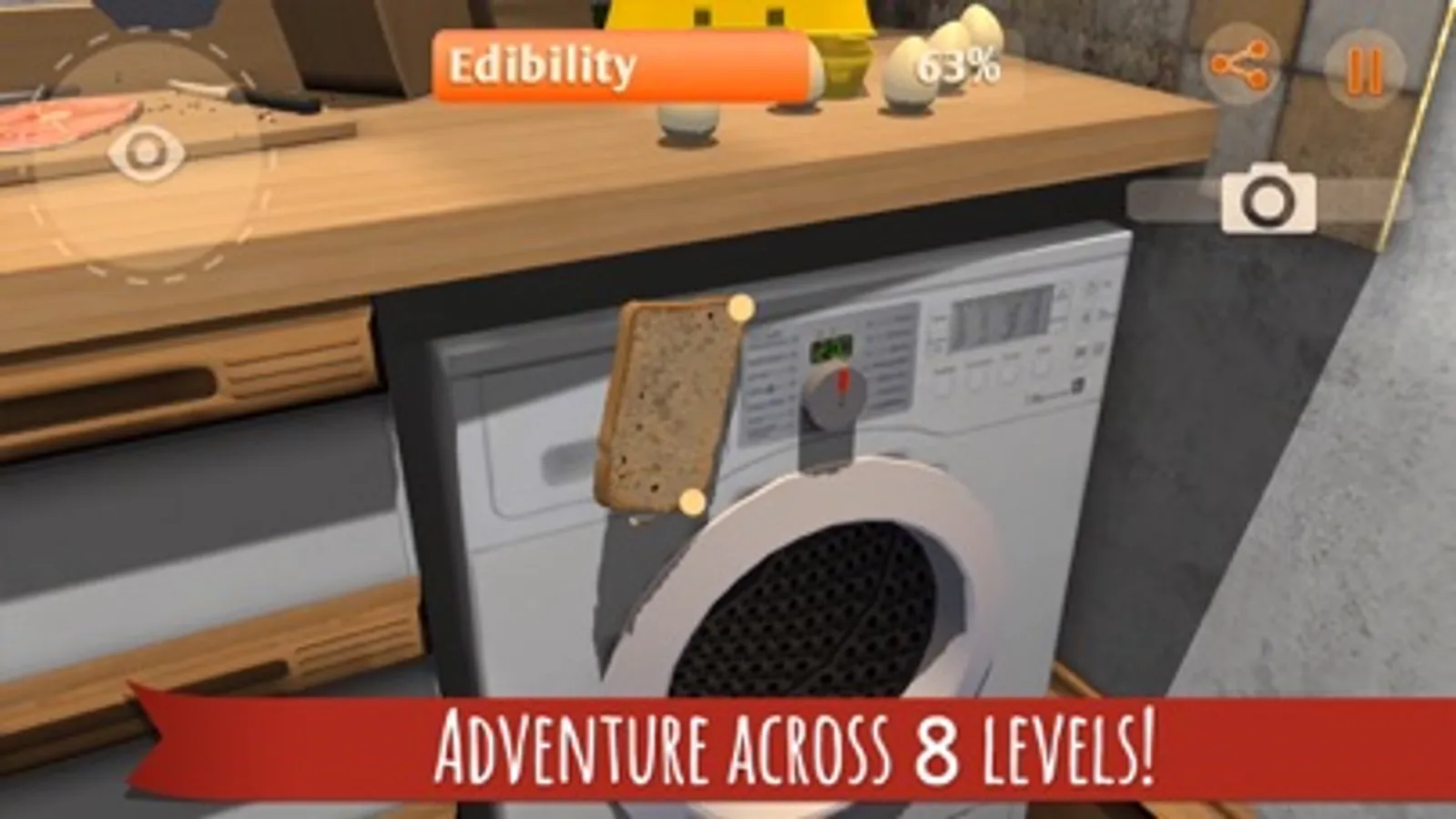 You are bread! Your mission, become toast! Take on all hazards to deliciousness as you head on an adventure across 8 levels taking bread from its natural confine in the kitchen, throughout the house and then venture outside into the garden and beyond. Look out for the floor and any other unsavoury obstacles that could harm your tastiness as you seek out the means to achieve bread's ultimate goal.