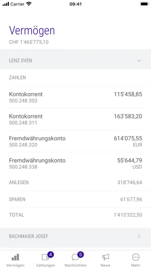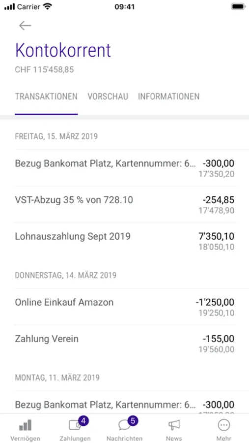 • Vermögen: Rufen Sie jederzeit Kontostände und Buchungsdetails ab.