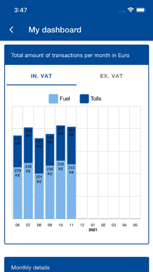 MAKE FLEET MANAGEMENT EASIER - Consult your invoices and all transactions made with your cards and toll badges. Keep an eye on your balance and easily check your monthly consumption on your dashboard: fuel consumption, toll payments, top 10 of the most used stations…