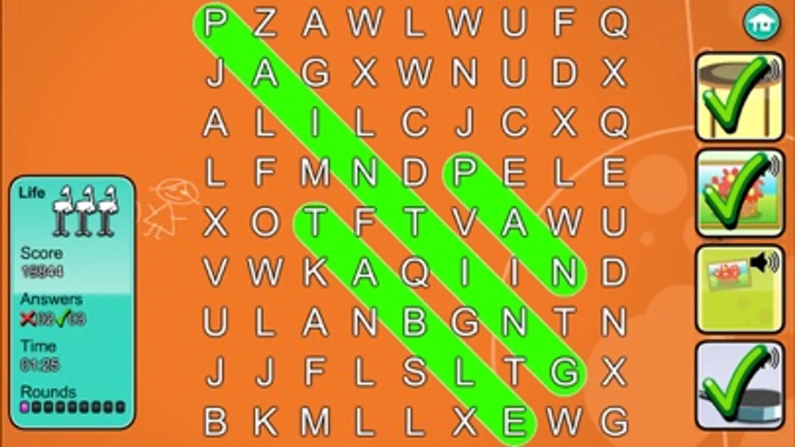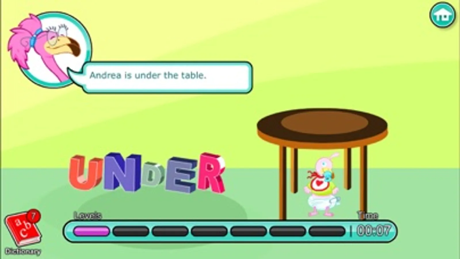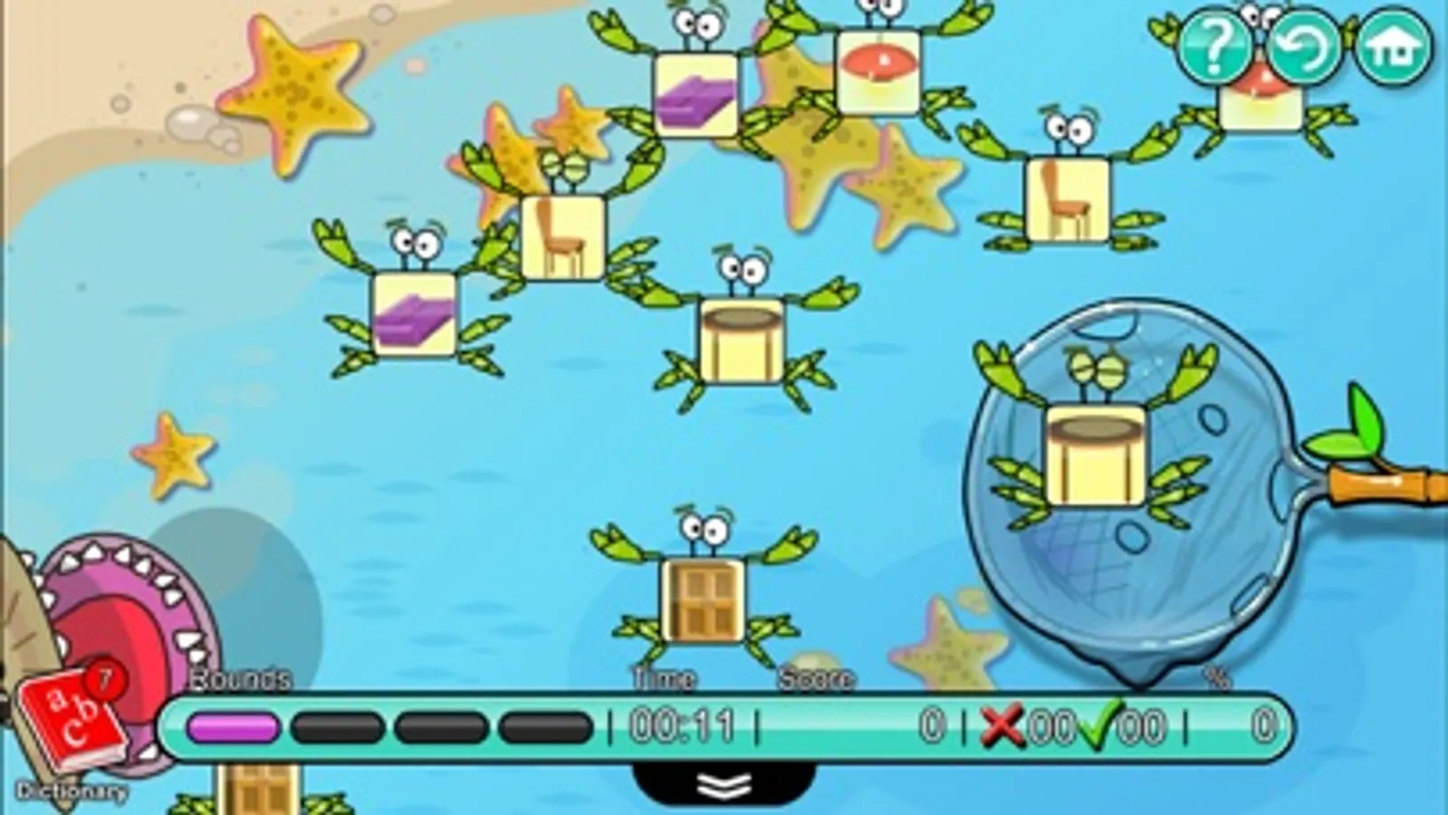 • 12 exercises and game activities: Rich Picture, Fish Spelling, Colour This, Drag and Spell, Catch the Crab, Grammar Demo, Sing Along, Word Search, Sentence Construction, Give Us a Clue, Point it Out, Interview