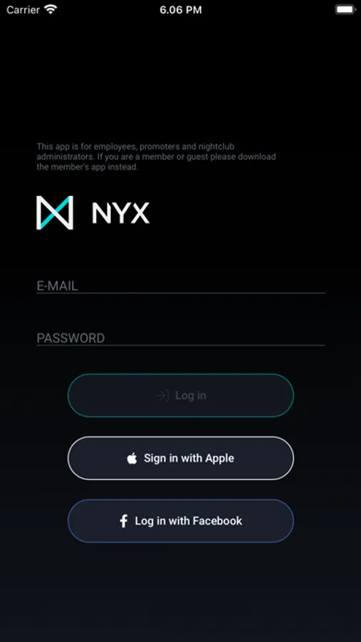 NOTE: This is not the public membership app. This one is for internal management only. If you are a guest/member please download the red Nyx app instead.