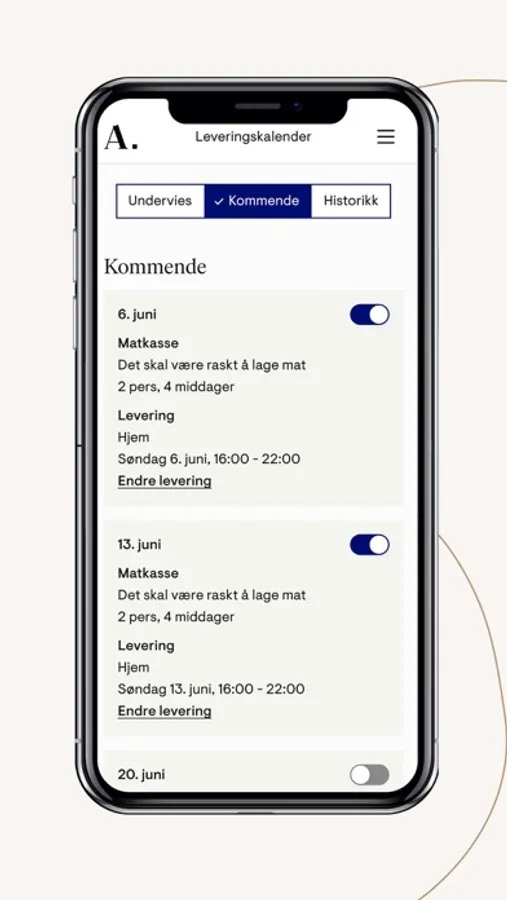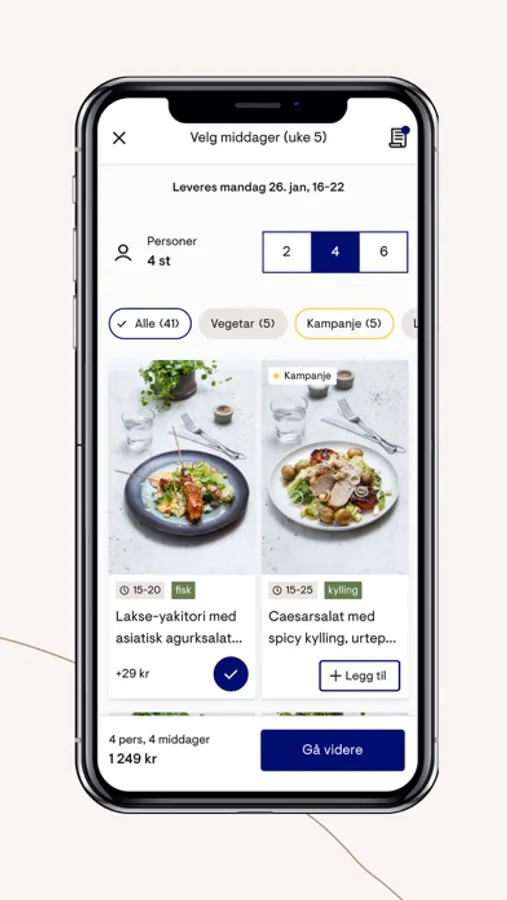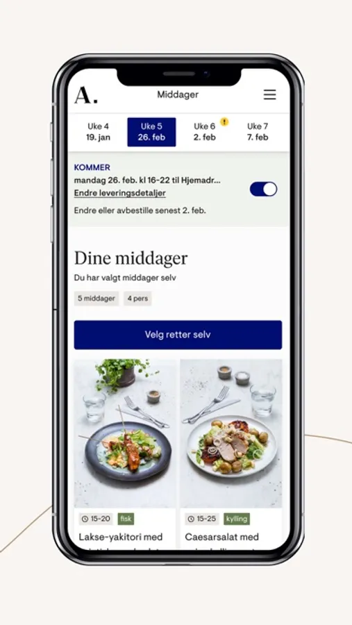 Med kvalitetsråvarer og spennende smakskombinasjoner, komponerer Adam og hans team oppskrifter som gjør det enkelt å lage spennende middager fra bunnen av. Det er ingen binding, du kan endre matkasse når du vil, eller sette sammen din egen meny. Levering er søndag eller mandag.