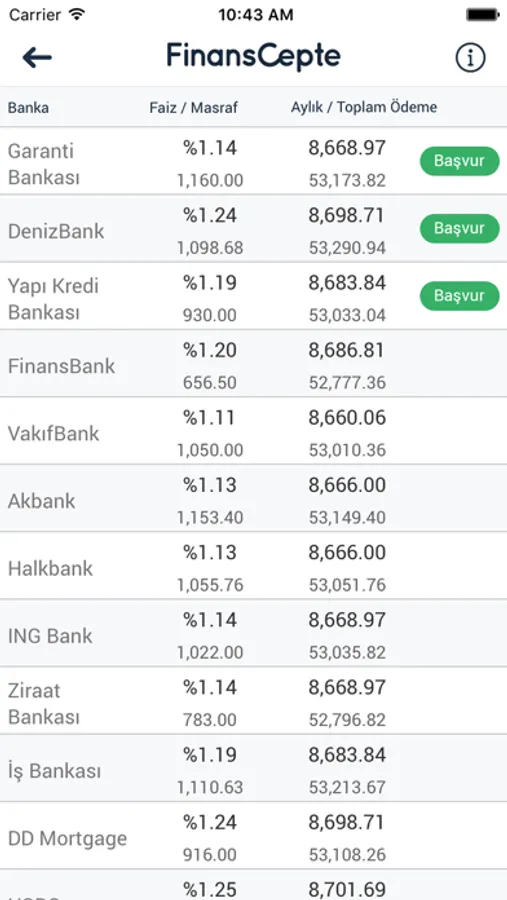 * Güncel faiz oranları üzerinden Garanti, Halkbank, Vakıfbank gibi bankalara ait kredi oranlarını gösterme
