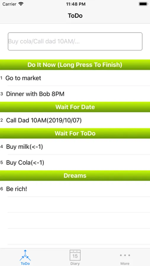 3. When a ToDo has been finished, or Date coming, Waiting ToDo moves to 'Do it Now' section automatically.