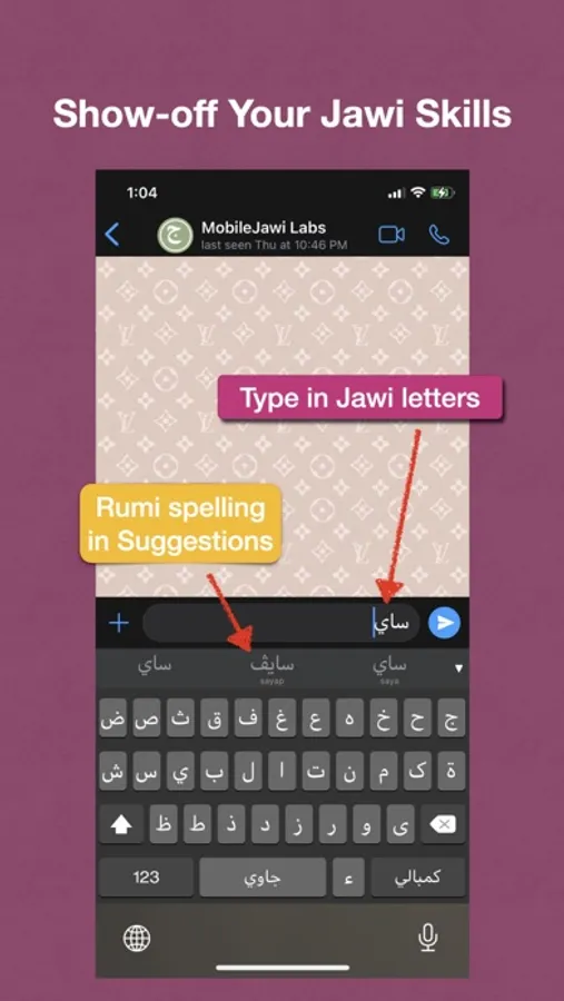 MobileJawi predicts the word you are trying to type and presents a list of suggested words. These words are shown in both Jawi and Rumi letters so you can cross check and be comfortable that you are indeed getting the word you want. It also auto-corrects the word before transliterating. Touching any of the suggested words will insert only the word spelt in Jawi into the text.