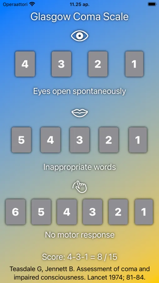 SOG's calculator is a straightforward tool for GCS-evaluation. Just tap your selections and you are done.