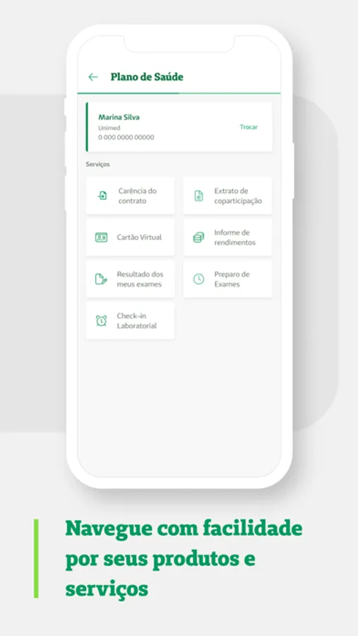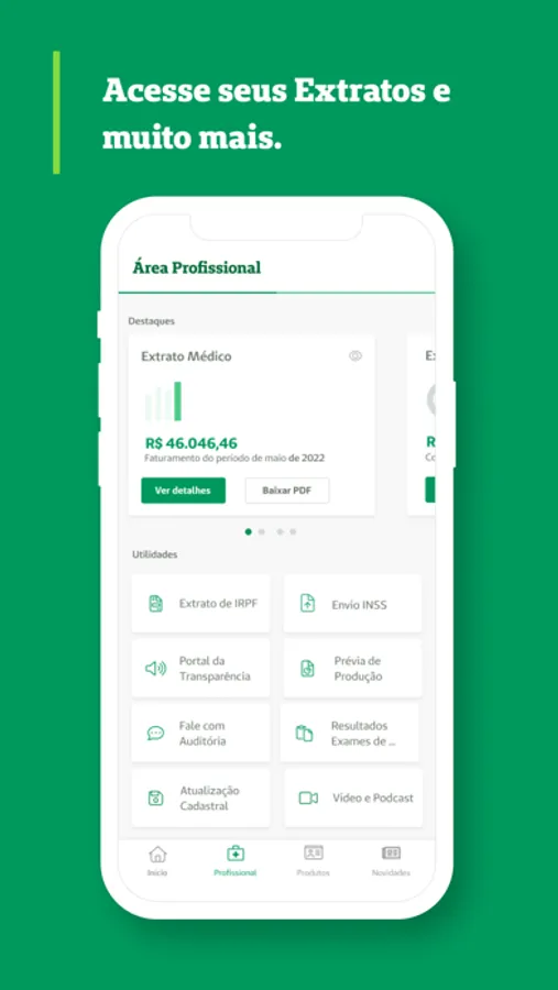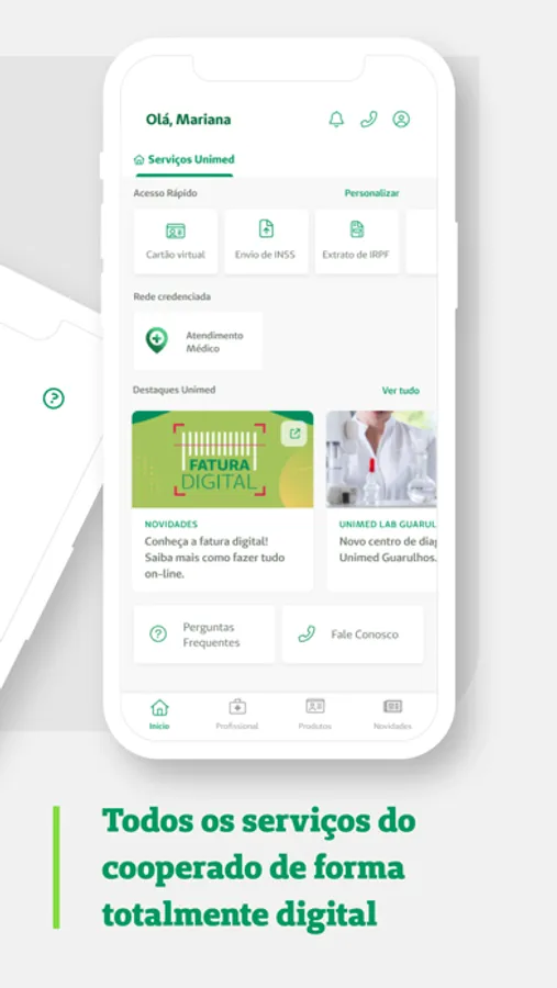 Os serviços disponíveis são health kit para monitoramento de atividades, extrato médico (modelo sintético), a pesquisa de produção médica, os comunicados institucionais, extrato de pontos do programa Participa Cooperado e acesso ao resultado de exames realizados nos serviços próprios da Unimed Porto Alegre.