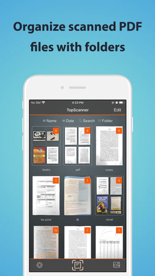*Organize your scanned documents in folders, sort by name, date or search by title.