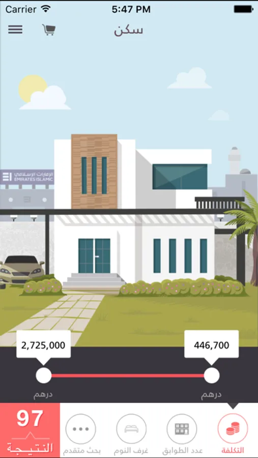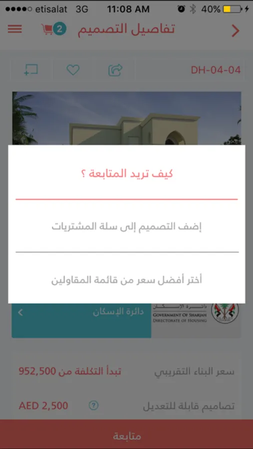 - الحصول على خيارات آنية لنوع التصميم وأسعار المقاولين وتكلفة التمويل المصرفي.