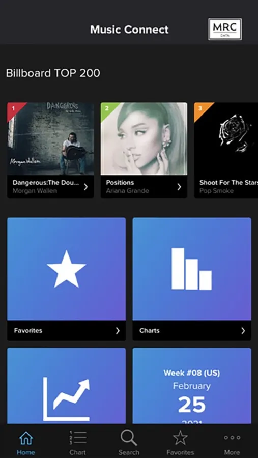 MRC Data's Music Connect is your complete music measurement platform. Sales, streaming, airplay, social media, the official Billboard charts – it’s all here and more. Whether you’re in a meeting or at a show, Music Connect is your companion to what’s happening in music.
