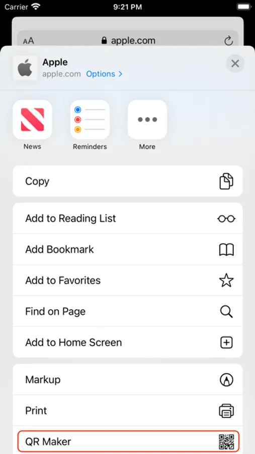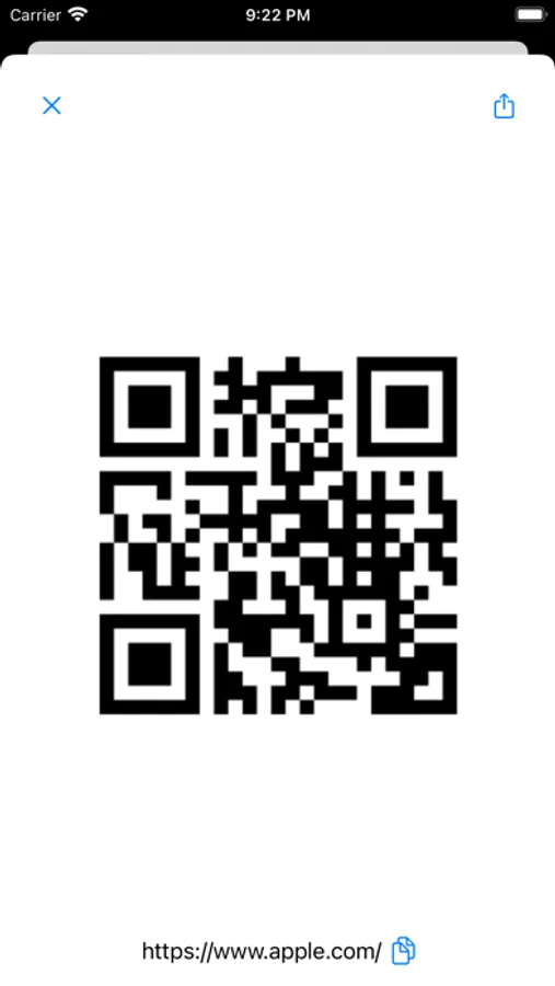 * Send QR image via email, SMS, iCloud photo sharing, etc