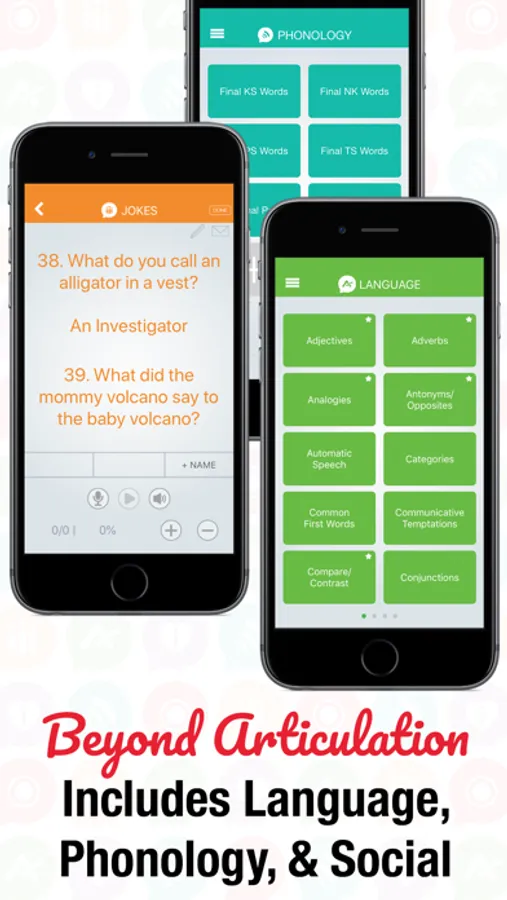 120+ categories of language building material, 3800+ minimal pairs and 295+ multi-syllabic words, and over 25 categories of social language content are also at your fingertips.