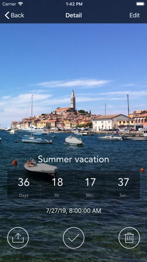 - share your countdowns in Calendar App and with friends by mail, message and on social nets