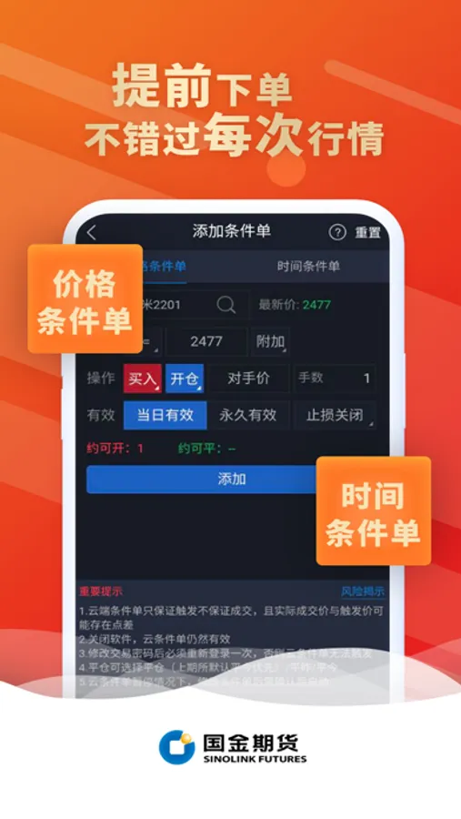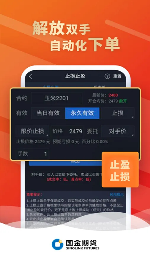 ● 期货交易——支持云条件单、止盈止损单、画线下单与套利交易