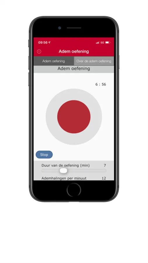 De cliënten kunnen vervolgens zelfstandig met de app oefenen om het ademritme naar het afgesproken doel te brengen.