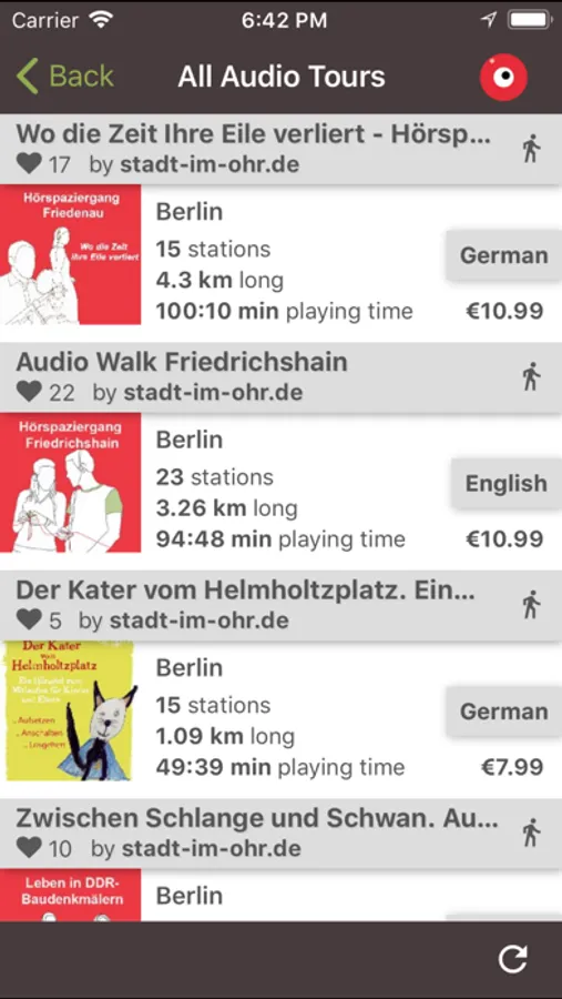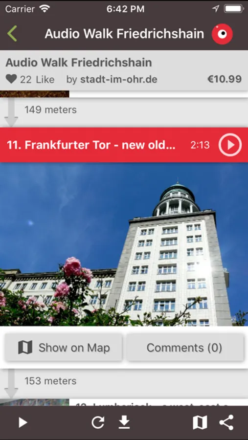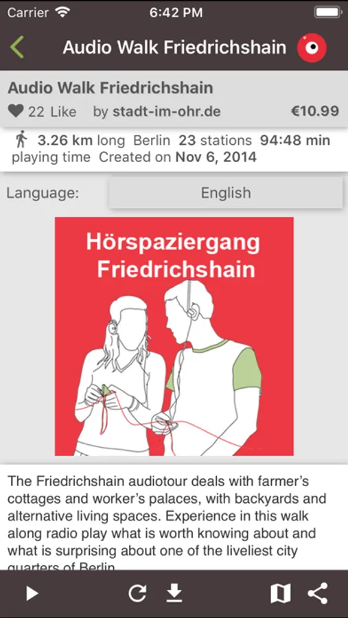 - the app and the first track of the tours are freee, the complete audio walks cost 10,99 €
