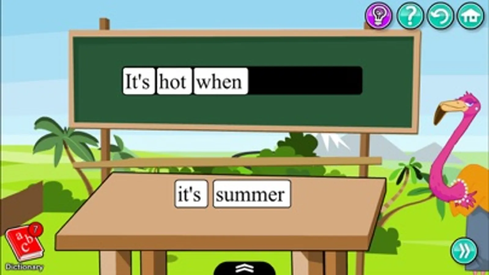 • 12 exercises and game activities: Rich Picture, Memory Game, Transmogrify, Fish Spelling, Colour This, Drag and Spell, Sing Along, Word Search, Sentence Construction, Give Us a Clue, Point it Out, Interview