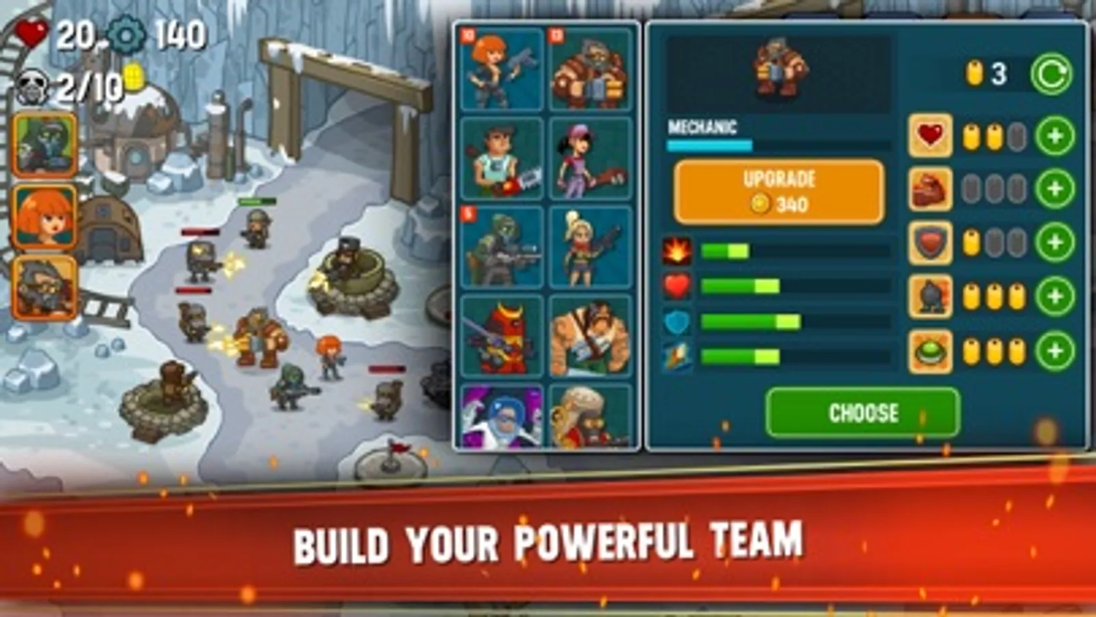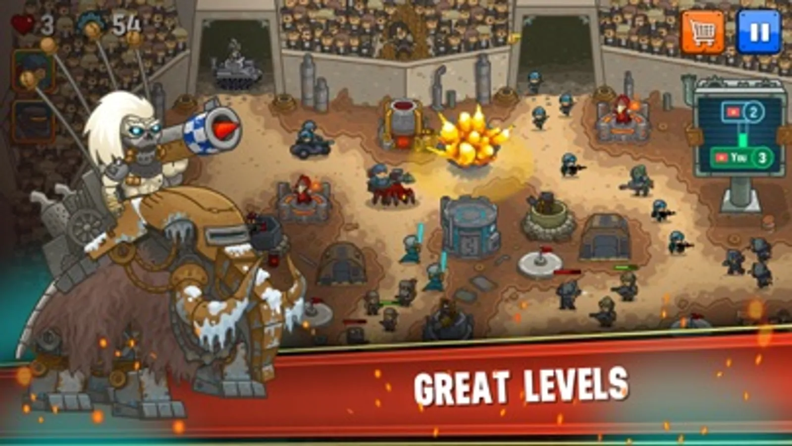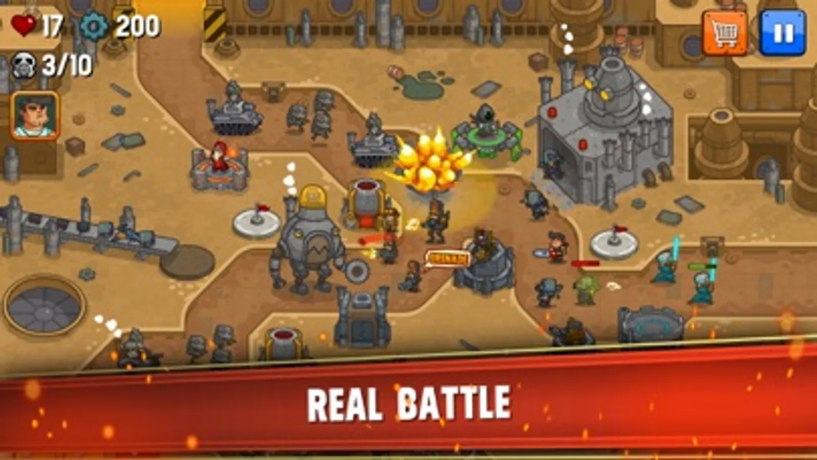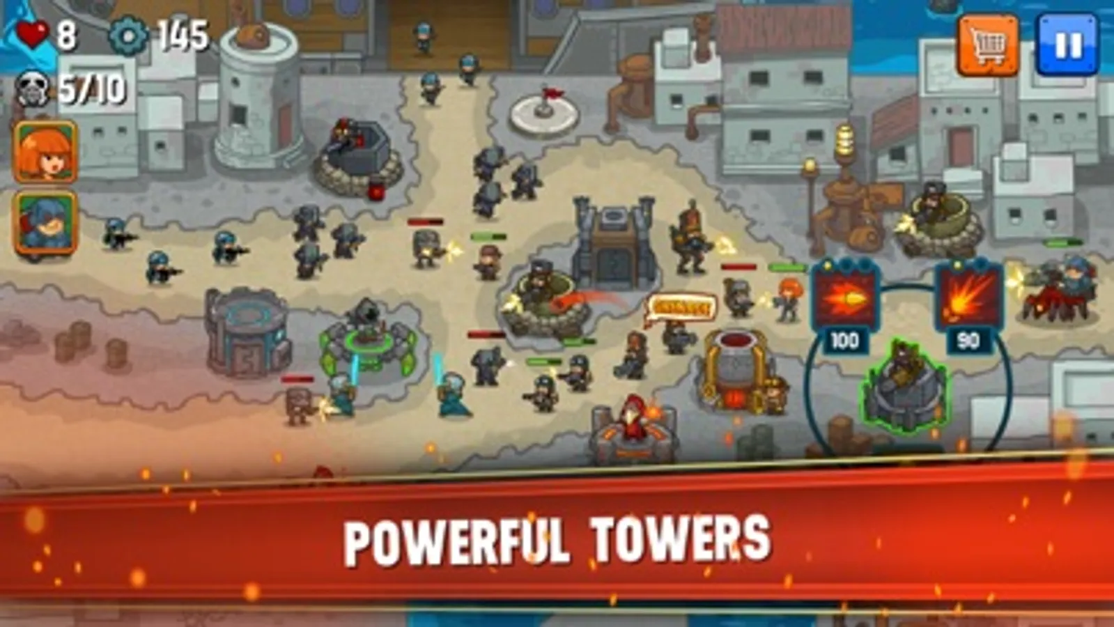 Your team consists of modern snipers, gunners, rockets and ice towers.