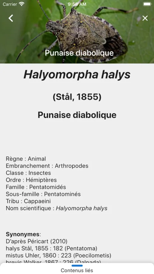 Cette application, simple d'utilisation, permet de reconnaître plusieurs insectes invasifs afin de déclarer leur présence dans des situations caractérisées. Grâce à un outil de reconnaissance et de gestion par l'image, vous serez en mesure de les identifier à partir de paramètres parfois différents en fonction de l'espèce : stade de développement, période de l'année, zone géographique, autres insectes prêtant à confusion. Cet outil d'aide à la décision vous facilitera aussi la gestion de leur présence dans votre environnement, ceci en suivant une démarche optimisée reprenant l'expertise de quelques spécialistes.