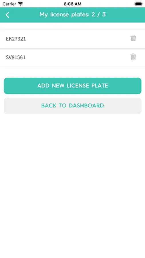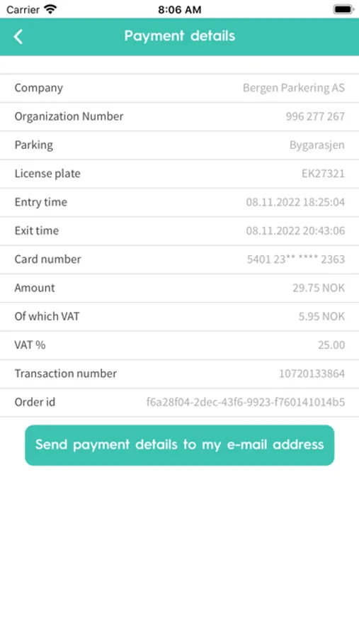 Information for each parking are documented in the app with start time, stop time and charged amount.
