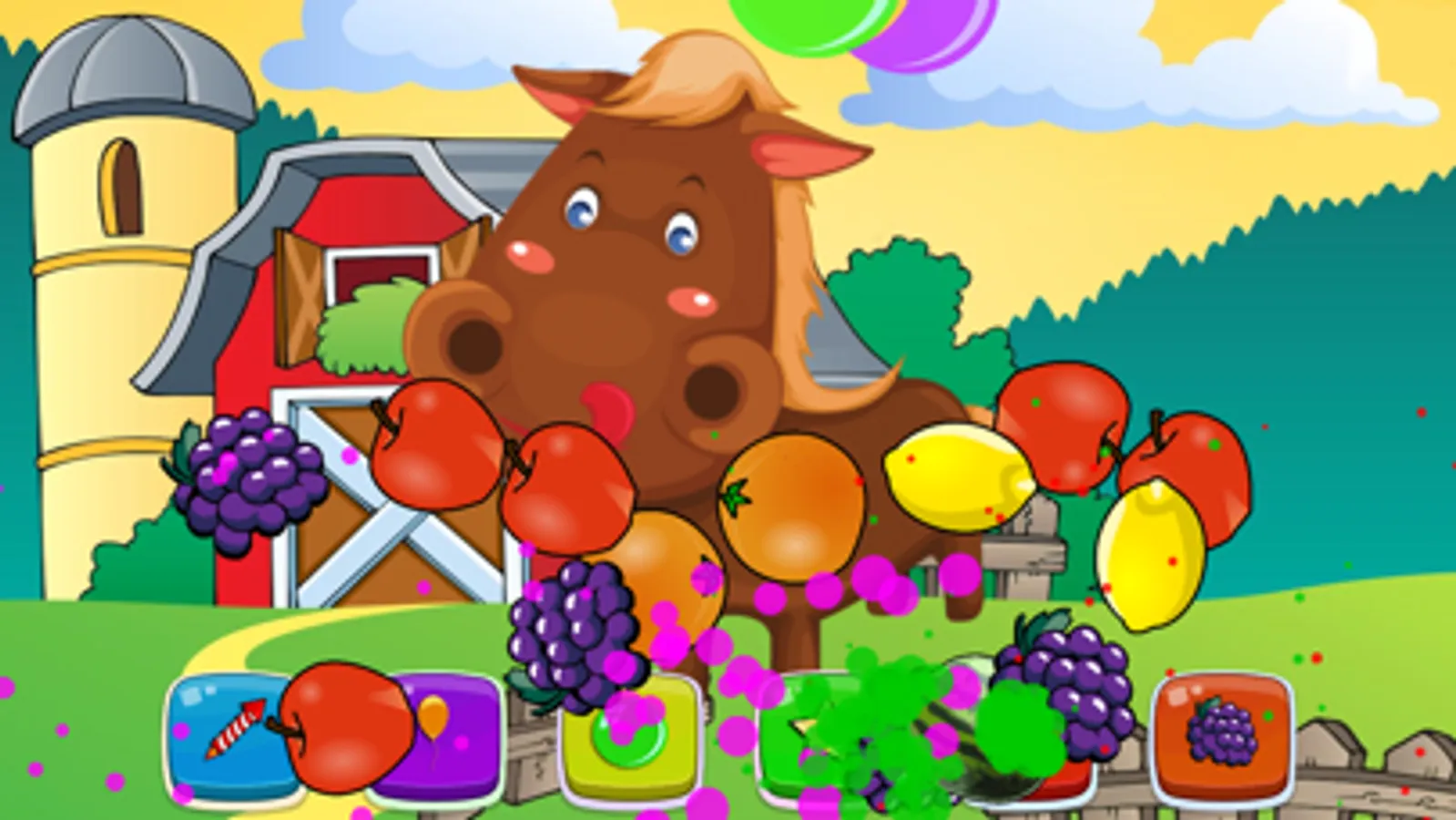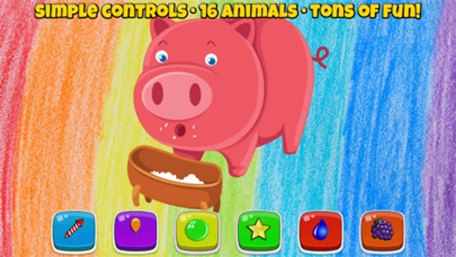 16 fun and interactive farm animals with easy controls so even little ones as young as 6 months old can play! Simply tap the animal to make them dance, move around, and make fun animal sounds. And 6 effect buttons keeps your toddler entertained with colorful fireworks, balloons, fruit, and more to pop and squish!