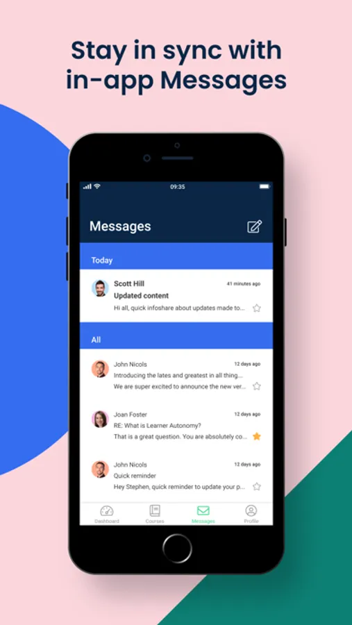 Send and receive Course updates with in-app messaging, and get feedback on Exams and Assignments.