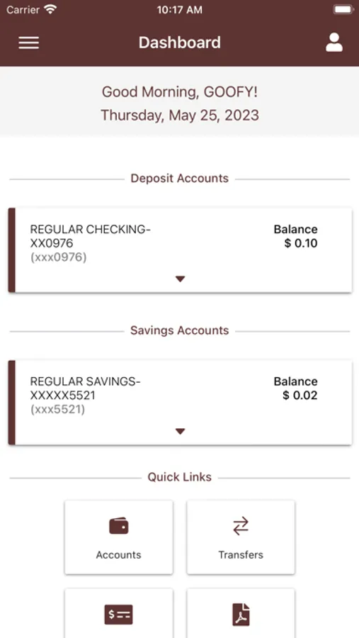 **Online customers must first setup transfer and bill pay accounts prior to using these features