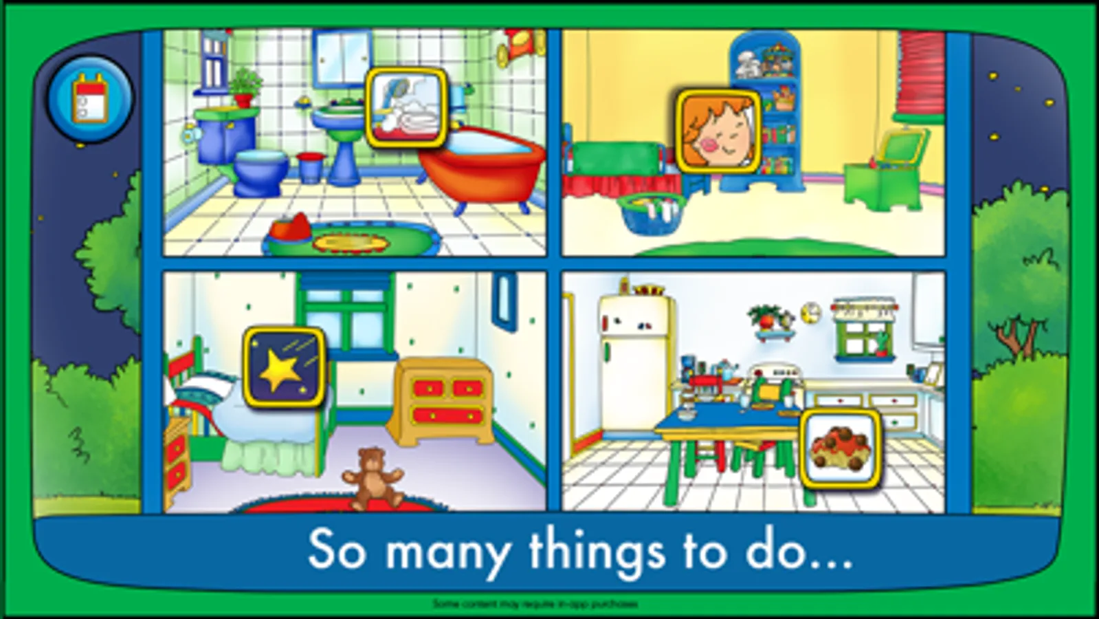 • Fun role-play for kids! Act like the parent by choosing the order of Caillou’s bedtime routine