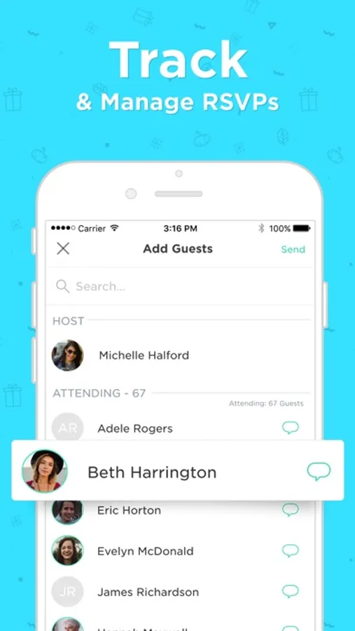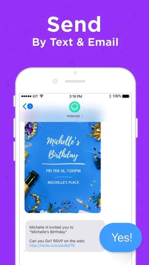 Get lightning fast RSVPs! Guests can just reply to the text to RSVP, so you get super fast responses.