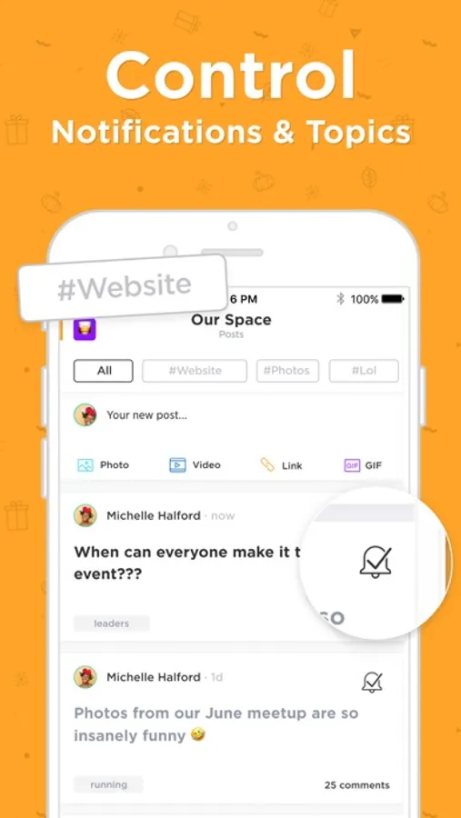 Enable or disable fast and fun event group chat, perfect to share excitement for the occasion, even if all guests don’t have each other’s contact information.