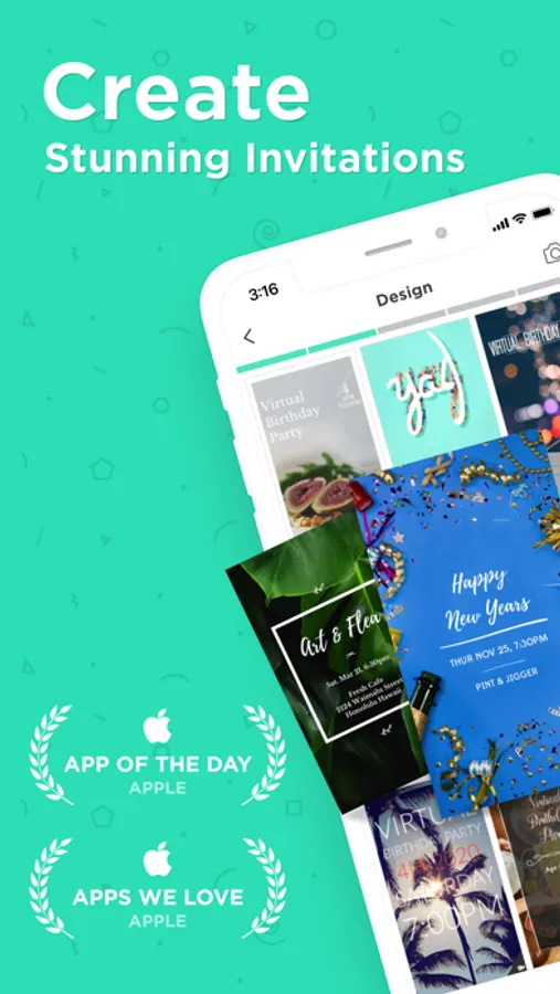 Look like you hired a professional designer by creating a stunning invite in seconds. Gorgeous video and photo options with unique typography and layouts.
