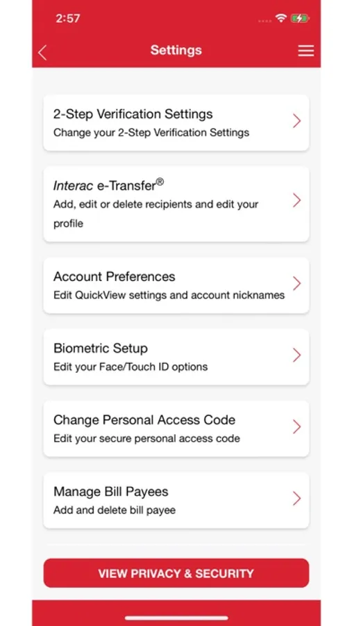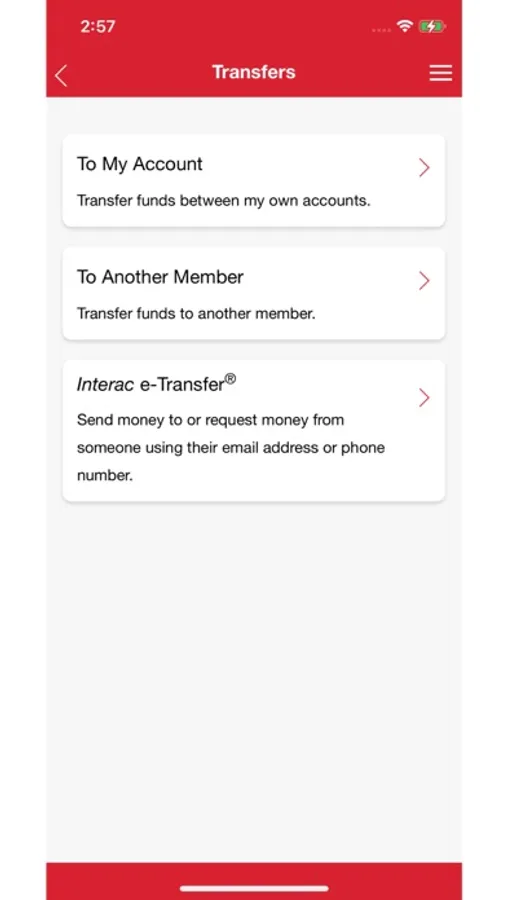 Contacts – allows you to create new INTERAC® e-Transfer recipients by selecting from your device contacts.