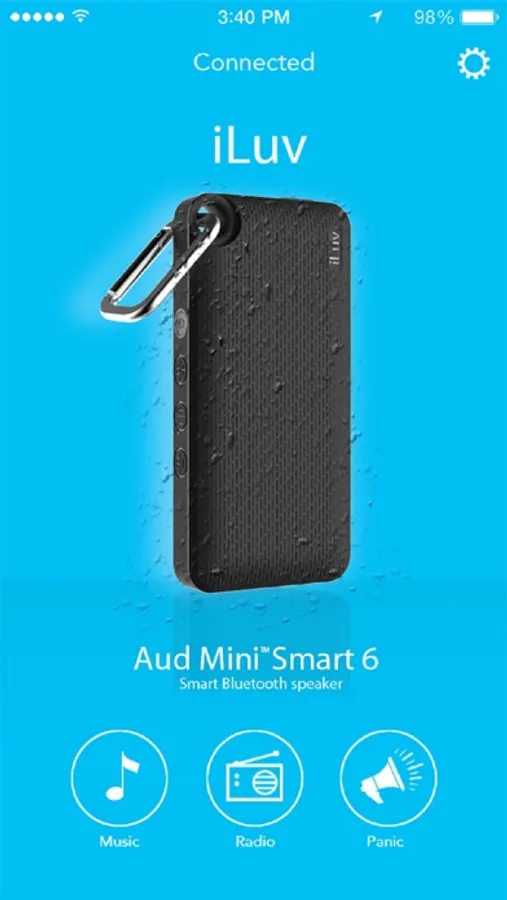 Share your favorite songs at your next party with Aud Mini Smart 6. Slim and compact, this portable Bluetooth speaker is as small as the iPhone 6 but delivers big, full-range sound that everyone will enjoy. Its small size makes it easy to carry by hand and it can also be clipped to bags or purses with its carabiner. Aud Mini Smart 6 works with an easy-to-use app that lets you pair your devices, stream music wirelessly and listen to FM radio. Additional features such as a rugged splash-proof design, hands-free calling and a panic alarm make Aud Mini Smart 6 a great on-the-go speaker.