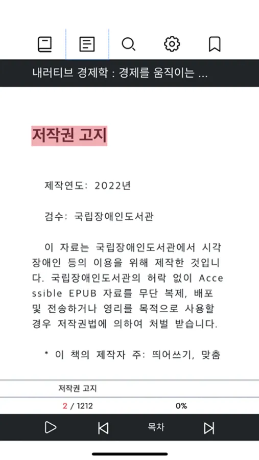 - 본 애플리케이션은 국립장애인도서관에서 장애인의 지식격차 해소와 지식정보접근기회를 확대하고자 클라우드기반으로 만들어진 장애인용 대체자료 모바일 서비스입니다.