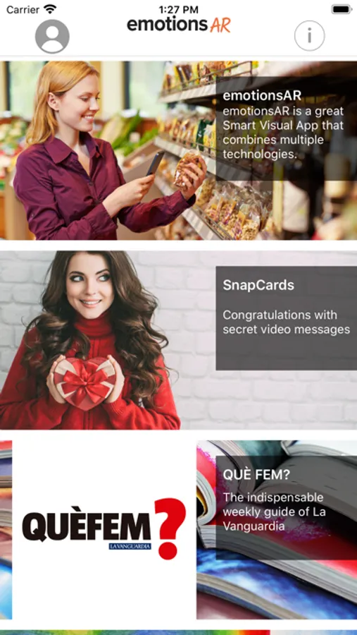 emotionsAR is a great Smart Visual App that combines multiple technologies like Augmented Reality, Image Recognition, IOT, ML among others. emotionsAR has been totally rebuilt and introduces a brand new Smart Visual experience.