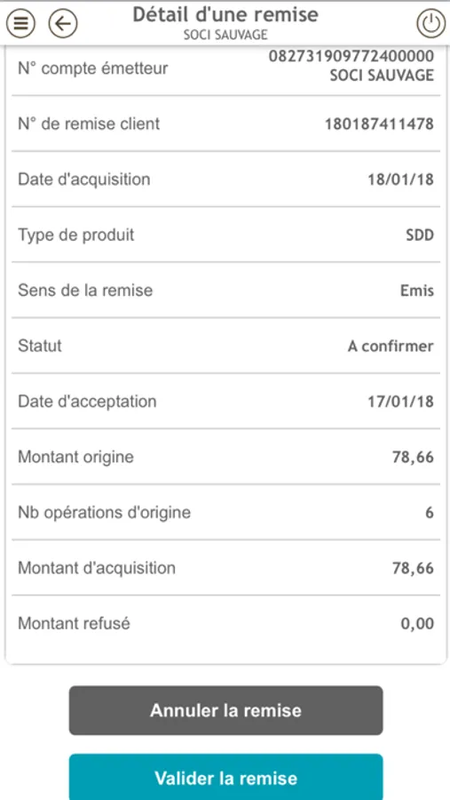 • Consulter la liste de vos remises depuis votre application. Confirmez ou annulez vos remises télétransmises d’ordres SEPA (exonération de l’envoi d’un fax signé par le directeur et plus de contraintes de localisation géographique de chaque acteur).