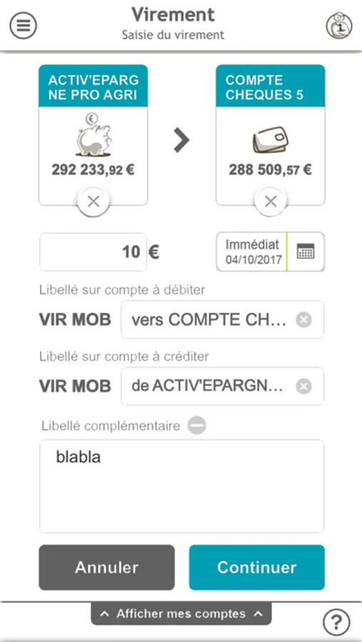 • Effectuer des virements : virements immédiats ou différés SEPA, virements de trésorerie. Vous pourrez également réaliser des virements France vers un bénéficiaire non enregistré en France.