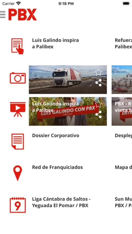 Nuestra App te muestra las últimas noticias de PBX, nuestro canal de video, la galería fotográfica y el dossier corporativo, entre otros, y te permite compartir la información de nuestras redes sociales.
