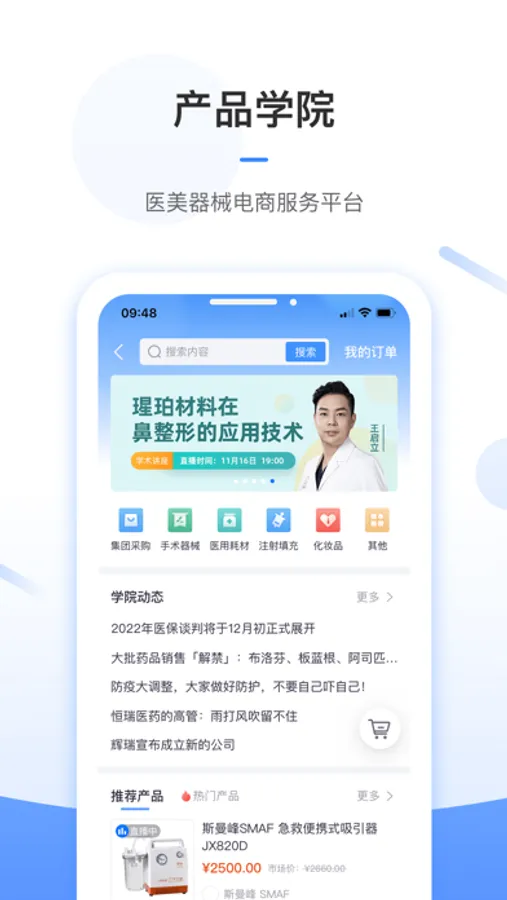 利用先进的3D模拟整形系统,为求美者提供图文、视频咨询指导等服务,让医生与求美者直接交流沟通。同时在云学院中,开展有手术视频、手术直播、医生讲座、行业会议、培训班等多种线上课程教学模式,为医生提供良好的学习和学术交流环境,全面提升医生的技术水平。