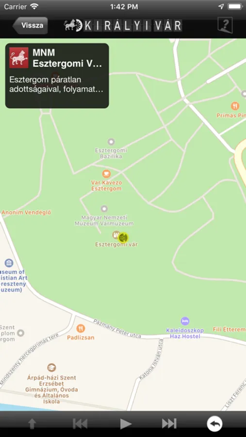 A SZTAKI által fejlesztett ingyenes okos telefonra letölthető alkalmazás a turistánknak segít eligazodni az új, interaktív kiállítótermek és kiállítások között. E virtuális kalauz segítségével innovatív módon barangolható be a magyar középkor, a felhasználó könnyebben eligazodhat az őt érdeklő programok és események között.