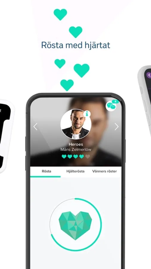 För att rösta klickar eller trycker du på hjärtat i appen så att det växer. Ett fullstort hjärta är lika med en röst. I direktsändningen visar hjärtat i rutan de olika tittargruppernas engagemang och hur mycket det röstas just nu. Du kan hjärtrösta upp till tio gånger på varje bidrag i deltävlingarna och i finalen. I semifinalen kan du hjärtrösta upp till fem gånger på varje bidrag. Lägg till vänner för att se hur de har hjärtröstat och tippat.