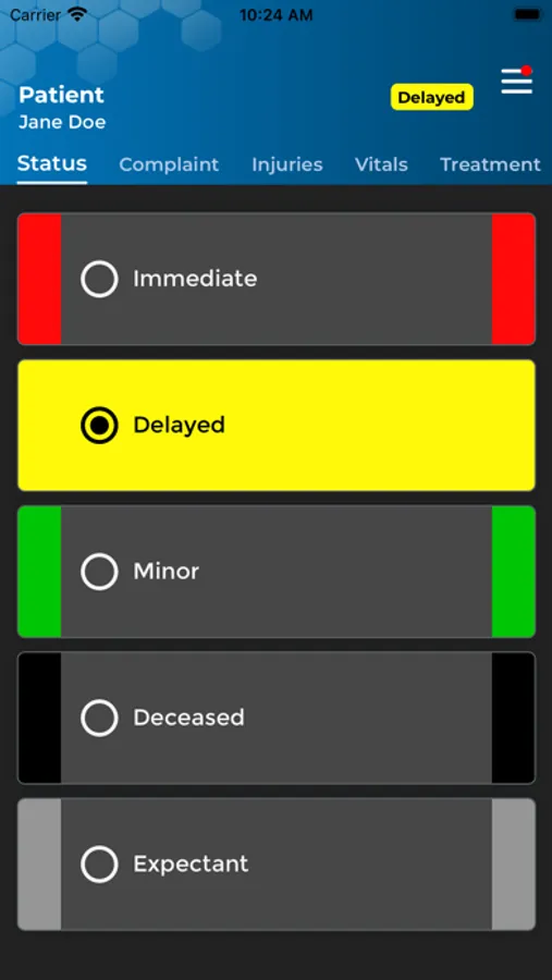 • Scans barcodes found on patient triage tags or driver’s licenses, creating a unique patient ID and automatically applying patient information stored on the driver’s license barcode.