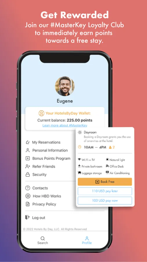 HotelsByDay is free to use. Download today to browse our selection of luxury hotels, and find your perfect daytime space.